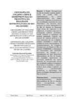 Geografia do colapso: Crise e desestruturação produtiva na realidade metropolitana do Rio de Janeiro -