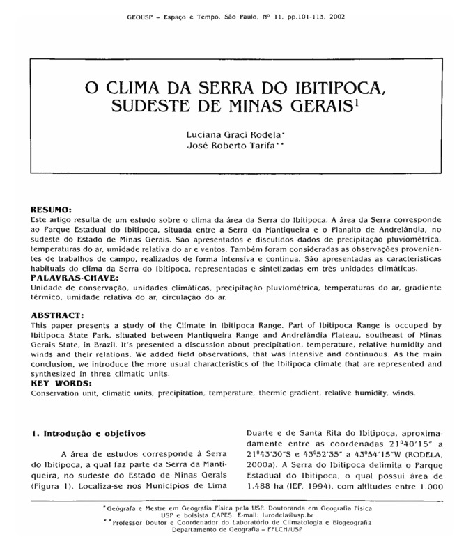 Este artigo resulta de um estudo sobre o clima da área da Serra do Ibitipoca. A área da Serra corresponde