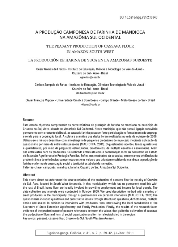 A PRODUÇÃO CAMPONESA DE FARINHA DE MANDIOCA NA AMAZÔNIA SUL OCIDENTAL - DOI 10.5216/bgg.V31i2.16843