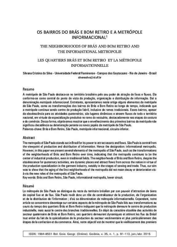 OS BAIRROS DO BRÁS E BOM RETIRO E A METRÓPOLE INFORMACIONAL - DOI 10.5216/bgg.v35i1.35486