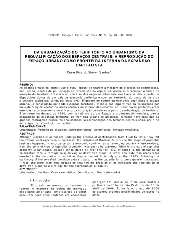 meio da “requalificação” de áreas centrais no interior das cidades, no Brasil novas periferias eram