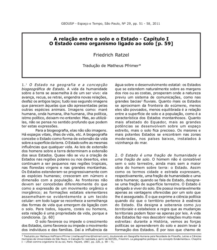 - A relação entre o solo e o Estado - Capítulo I. O Estado como organismo ligado ao solo