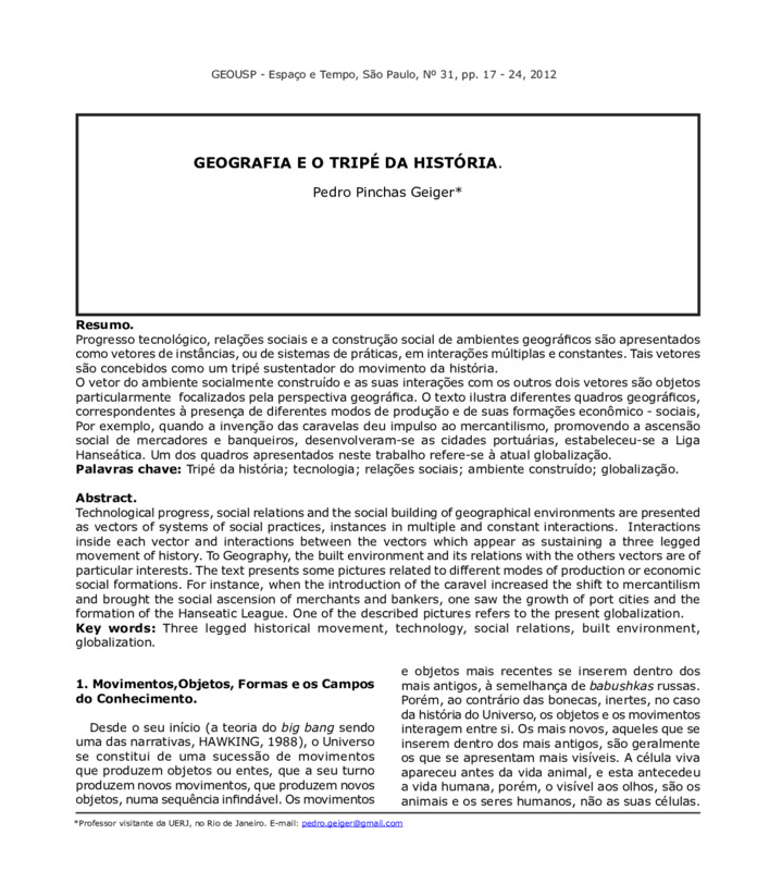 particularmente focalizados pela perspectiva geográfica. O texto ilustra diferentes quadros geográficos,