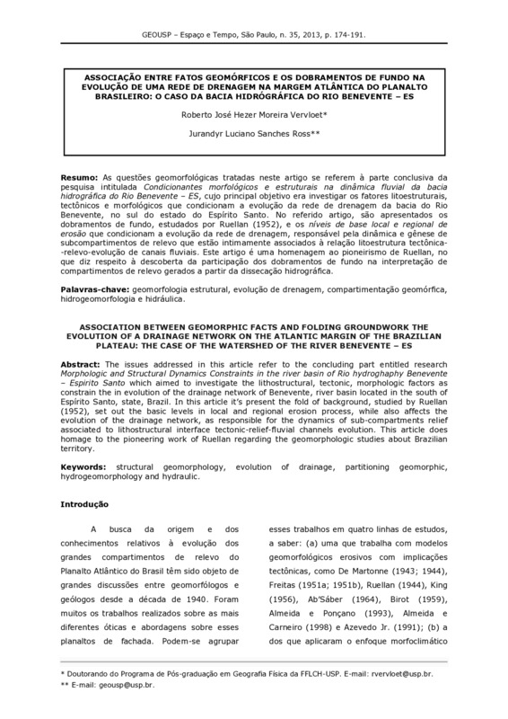 ASSOCIAÇÃO ENTRE FATOS GEOMÓRFICOS E OS DOBRAMENTOS DE FUNDO NA EVOLUÇÃO DE UMA REDE DE DRENAGEM NA MARGEM ATLÂNTICA DO PLANALTO BRASILEIRO: O CASO DA BACIA HIDRÓGRÁFICA DO RIO BENEVENTE – ES