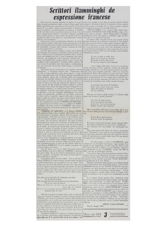 - Estudo, em italiano, sobre os escritores flamengos de expressão francesa