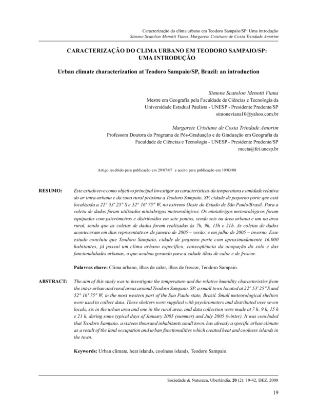 Caracterização do clima urbano em Teodoro Sampaio/SP: Uma introdução / Urban climate characterization at Teodoro Sampaio/SP, Brazil: an introduction