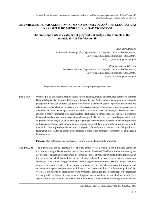As unidades de paisagem como uma categoria de análise geográfica: o exemplo do município de São Vicente-SP / The landscape units as a category of geographical analysis: the example of the municipality of São Vicente-SP