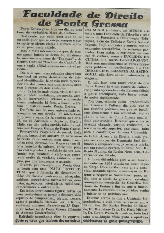 - Faculdade de Direito de Ponta Grossa (das dificuldades de colocá-la em funcionamento)