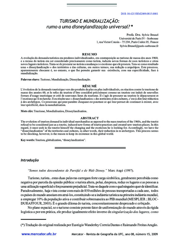TURISMO E MUNDIALIZAÇÃO: rumo a uma disneylandização universal? (tourism and globalization: heading for universal “disneylandization”?)
