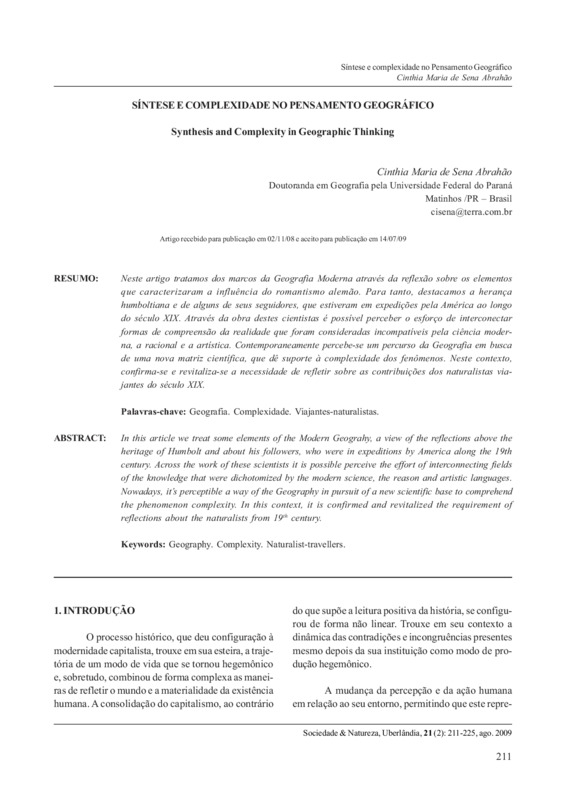 Síntese e complexidade no pensamento geográfico / Synthesis and Complexity in Geographic Thinking