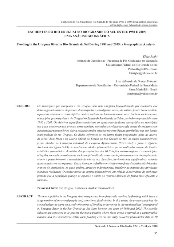 Enchentes do Rio Uruguai no Rio Grande do Sul entre 1980 e 2005: uma análise geográfica / Flooding in the Uruguay River in Rio Grande do Sul During 1980 and 2005: a Geographical Analysis
