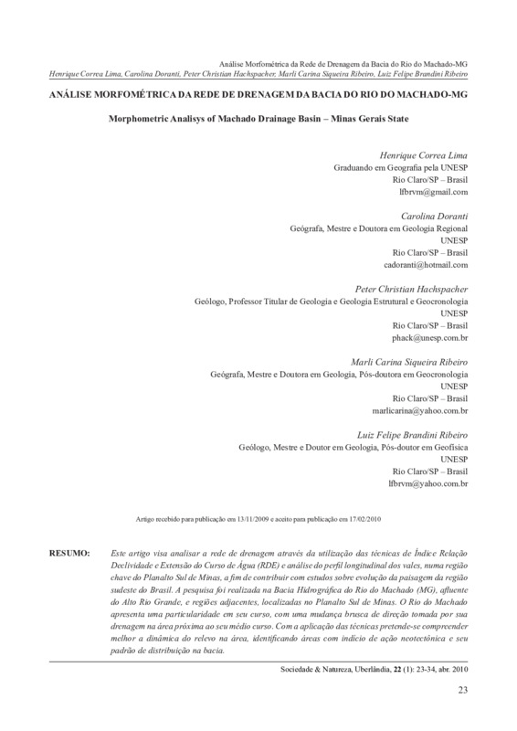 Análise Morfométrica da Rede de Drenagem da Bacia do Rio do Machado-MG / Morphometric Analisys of Machado Drainage Basin – Minas Gerais State