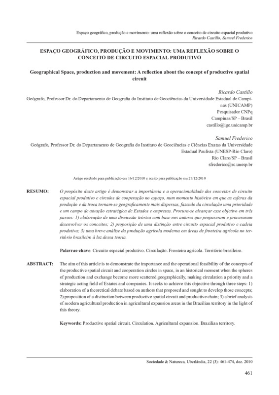 Espaço geográfico, produção e movimento: uma reflexão sobre o conceito de circuito espacial produtivo / Geographical Space, production and movement: A reflection about the concept of productive spatial circuit