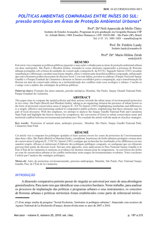 POLÍTICAS AMBIENTAIS COMPARADAS ENTRE PAÍSES DO SUL: pressão antrópica em áreas de proteção ambiental urbanas (comparative environmental policies between southern countries: anthropogenic pressure in urban areas of environmental protection)