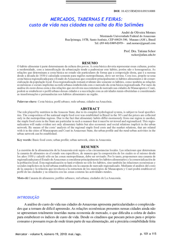 MERCADOS, TABERNAS E FEIRAS: custo de vida nas cidades na calha do Rio Solimões (markets, delis and street markets: living costs in the cities along the River)