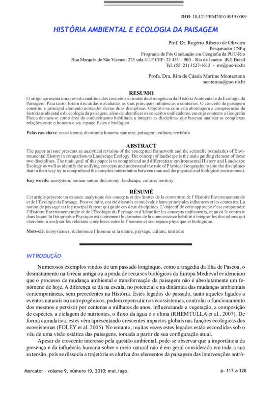 HISTÓRIA AMBIENTAL E ECOLOGIA DA PAISAGEM: CAMINHOS INTEGRATIVOS NA GEOGRAFIA FÍSICA (environmental history and landscape ecology: integrative tracks in physical geography)