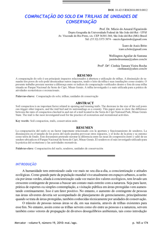 COMPACTAÇÃO DO SOLO EM TRILHAS DE UNIDADES DE CONSERVAÇÃO (soil compaction in trails of conservation units)