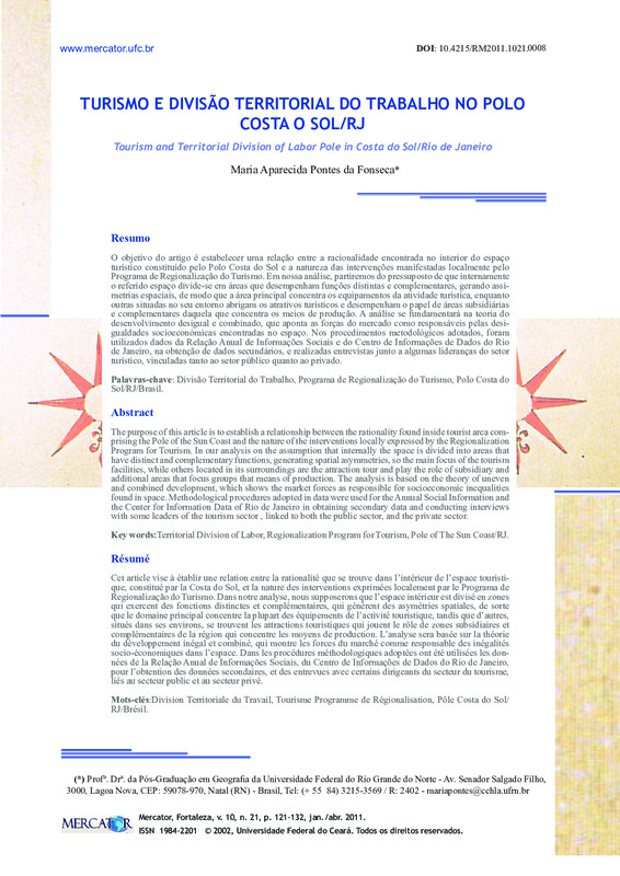 TURISMO E DIVISÃO TERRITORIAL DO TRABALHO NO POLO COSTA O SOL/RJ (tourism and territorial division of labor Pole in Costa do Sol/Rio de Janeiro)