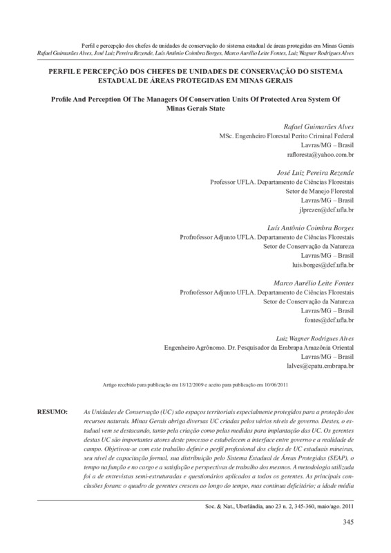 Perfil e percepção dos chefes de unidades de conservação do sistema estadual de áreas protegidas em Minas Gerais / Profile And Perception Of The Managers Of Conservation Units Of Protected Area System Of Minas Gerais State