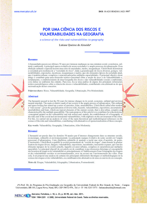 POR UMA CIÊNCIA DOS RISCOS E VULNERABILIDADES NA GEOGRAFIA (a science of the risks and vulnerabilities to geography)