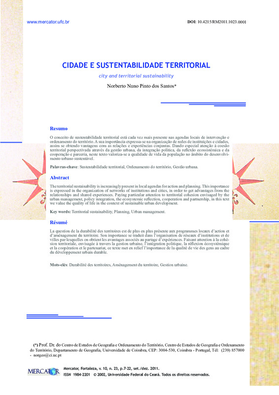 CIDADE E SUSTENTABILIDADE TERRITORIAL (city and territorial sustainability)