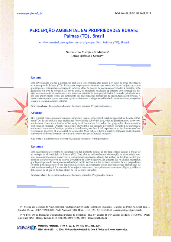 PERCEPÇÃO AMBIENTAL EM PROPRIEDADES RURAIS: Palmas (TO), Brasil (environmental perception in rural properties: Palmas (TO), Brazil)