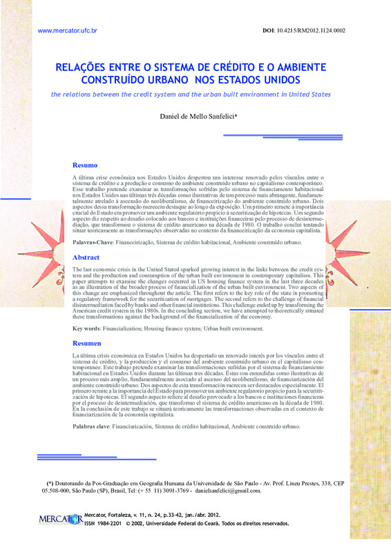 RELAÇÕES ENTRE O SISTEMA DE CRÉDITO E O AMBIENTE CONSTRUÍDO URBANO NOS ESTADOS UNIDOS (the relations between the credit system and the urban built environment in United States)