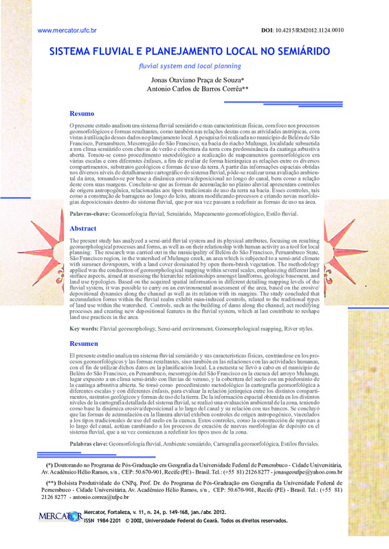 SISTEMA FLUVIAL E PLANEJAMENTO LOCAL NO SEMIÁRIDO (fluvial system and local planning)