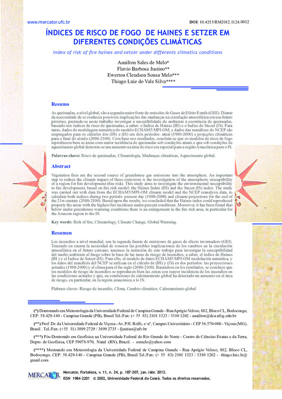 ÍNDICES DE RISCO DE FOGO DE HAINES E SETZER EM DIFERENTES CONDIÇÕES CLIMÁTICAS (index of risk of HAINES and SETZER under differents climatics condition)