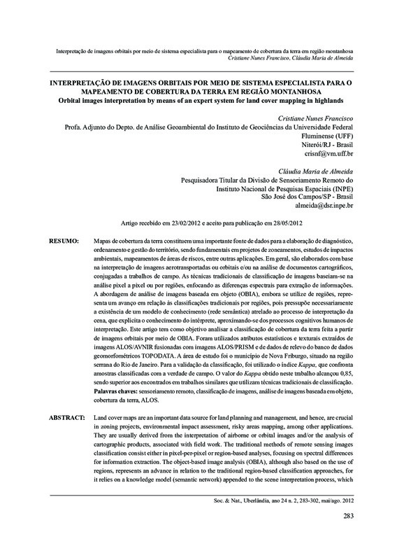 interpretação. Este artigo tem como objetivo analisar a classificação de cobertura da terra feita a partir