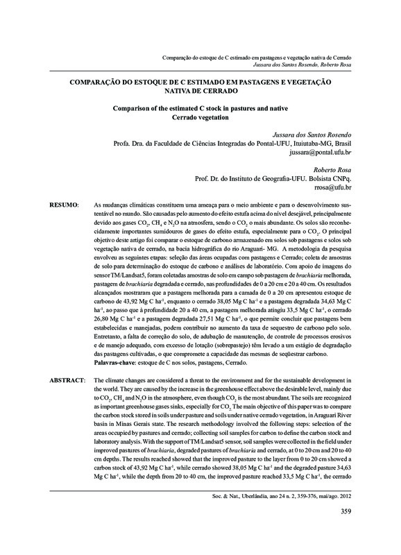 objetivo deste artigo foi comparar o estoque de carbono armazenado em solos sob pastagens e solos sob
