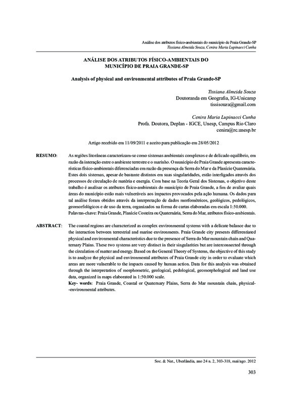Palavras-chave: Praia Grande, Planície Costeira ou Quaternária, Serra do Mar, atributos físico-ambientais.