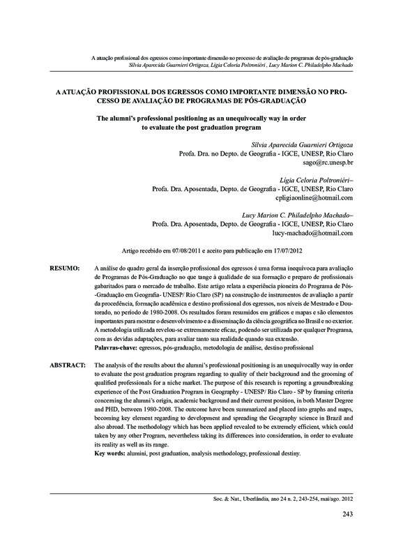A atuação profissional dos egressos como importante dimensão no processo de avaliação de programas de pós-graduação / The alumni’s professional positioning as an unequivocally way in order to evaluate the post graduation program