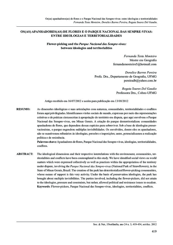 Os(as) apanhadores(as) de flores e o Parque Nacional das Sempre-vivas: entre ideologias e territorialidades / Flower-picking and the Parque Nacional das Sempre-vivas: between ideologies and territorialities