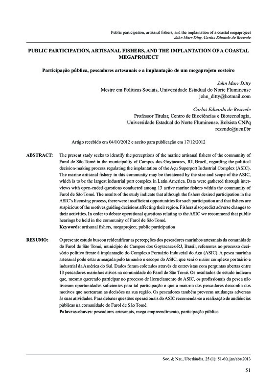 Public participation, artisanal fishers, and the implantation of a coastal megaproject / Participação pública, pescadores artesanais e a implantação de um megaprojeto costeiro