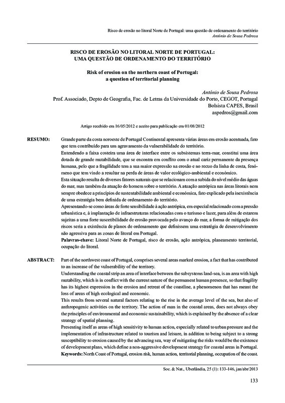 Risco de erosão no litoral Norte de Portugal: uma questão de ordenamento do território / Risk of erosion on the northern coast of Portugal: a question of territorial planning