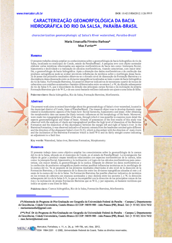 CARACTERIZAÇÃO GEOMORFOLÓGICA DA BACIA HIDROGRÁFICA DO RIO DA SALSA, PARAÍBA-BRASIL (characterization geomorphologic of Salsa’s River watershed, Paraiba-Brazil)
