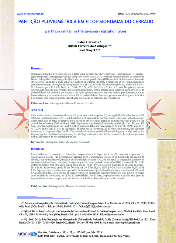 PARTIÇÃO PLUVIOMÉTRICA EM FITOFISIONOMIAS DO CERRADO (partition rainfall in the savanna vegetation types)