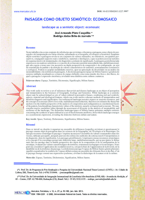 PAISAGEM COMO OBJETO SEMIÓTICO: ECOMOSAICO (landscape as a semiotic object: ecomosaic)