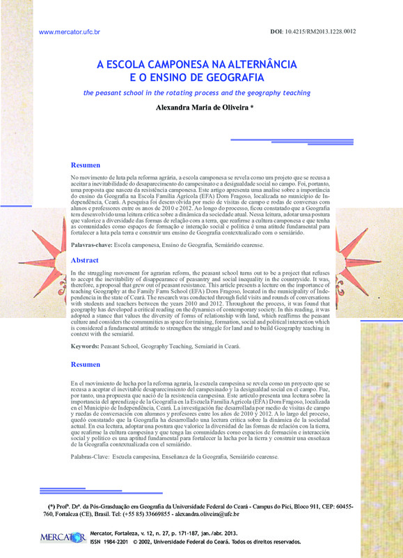 fortalecer a luta pela terra e construir um ensino de Geografia contextualizado com o semiárido.