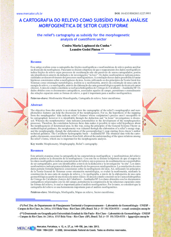 A CARTOGRAFIA DO RELEVO COMO SUBSÍDIO PARA A ANÁLISE MORFOGENÉTICA DE SETOR CUESTIFORME (the relief’s cartography as subsidy for the morphogenetic analysis of cuestiform sector)