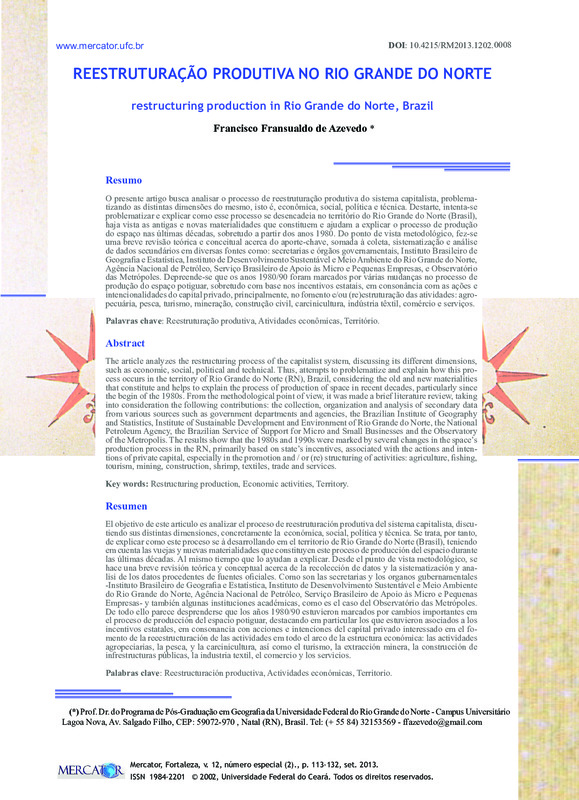 REESTRUTURAÇÃO PRODUTIVA NO RIO GRANDE DO NORTE (restructuring production in Rio Grande do Norte, Brazil)