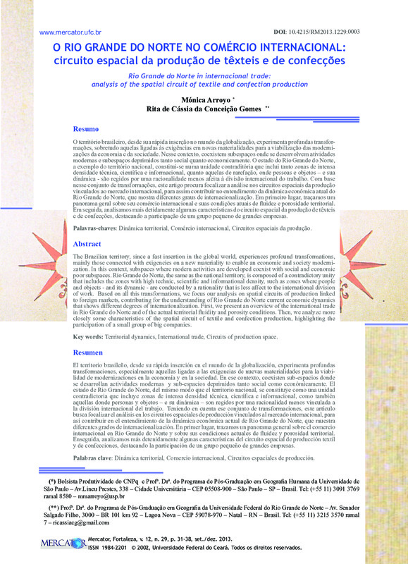 O RIO GRANDE DO NORTE NO COMÉRCIO INTERNACIONAL: circuito espacial da produção de têxteis e de confecções (Rio Grande do Norte in internacional trade: analysis of the spatial circuit of textile and confection production)