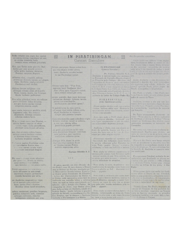 - Poema em latim sobre o quarto centenário de São Paulo, e a sua tradução por dois professores