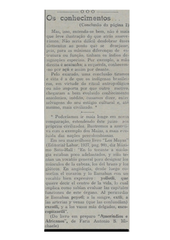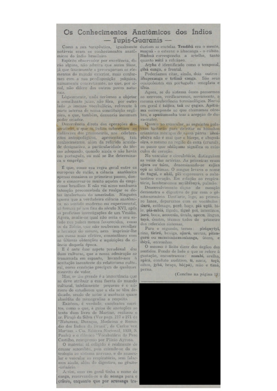 - Os conhecimentos anatômicos dos índios tupis-guaranis. Do livro em preparo Ameríndios e africanos