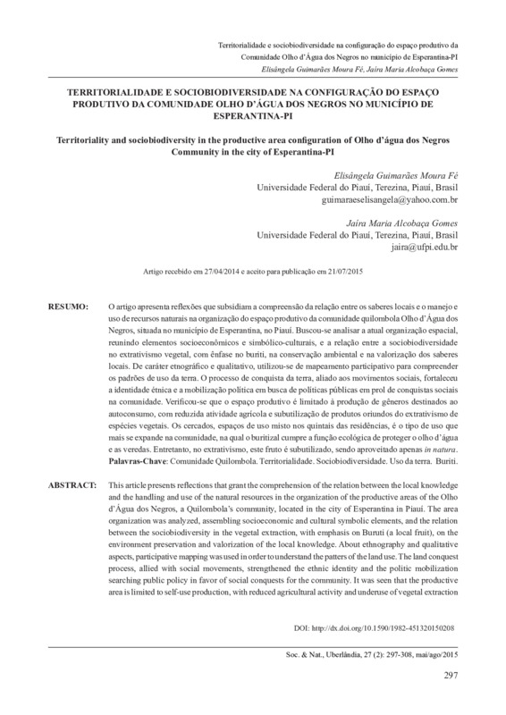 Territorialidade e sociobiodiversidade na configuração do espaço produtivo da Comunidade Olho d’Água dos Negros no município de Esperantina-PI