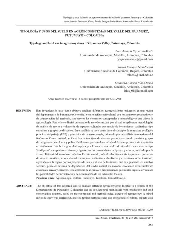 Tipología y usos del suelo en agroecosistemas del valle del guamuez, Putumayo – Colombia / Typology and land use in agroecosystems of Guamuez Valley, Putumayo, Colombia