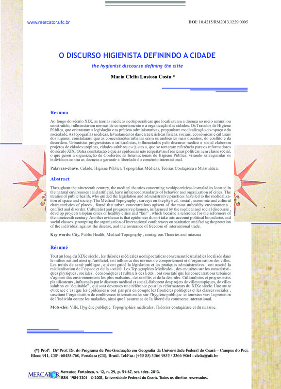 O DISCURSO HIGIENISTA DEFININDO A CIDADE (the hygienist discourse defining the citie)