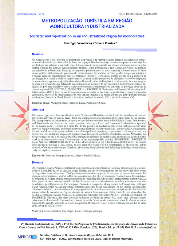 METROPOLIZAÇÃO TURÍSTICA EM REGIÃO MONOCULTORA INDUSTRIALIZADA (touristic metropolization in an industrialized region by monoculture)
