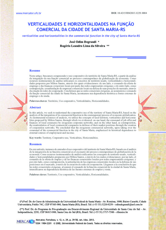 VERTICALIDADES E HORIZONTALIDADES NA FUNÇÃO COMERCIAL DA CIDADE DE SANTA MARIA - RS (verticalities and horizontalities in the commercial function in the city of Santa Maria-RS)